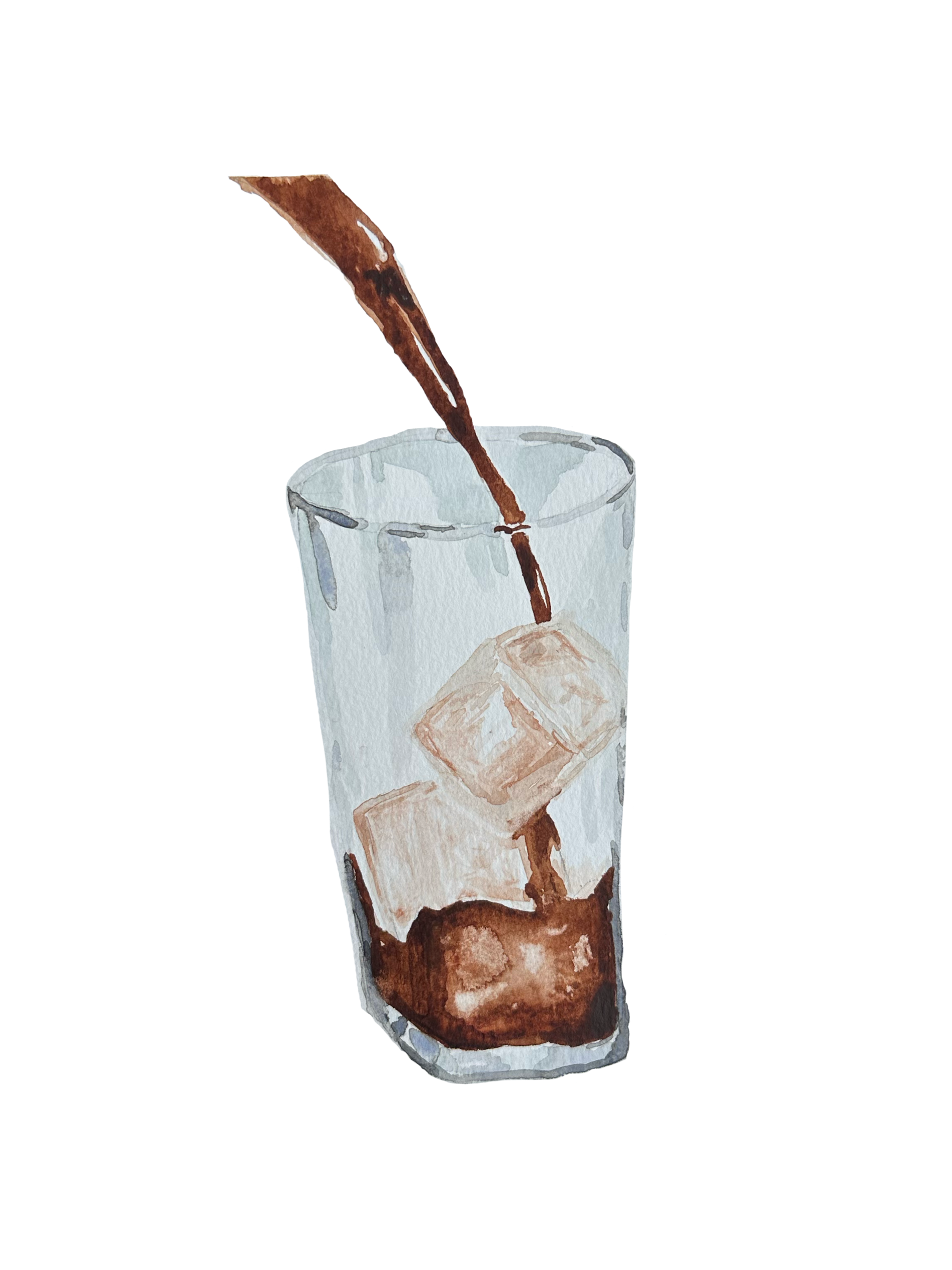 Made for a coffee magazine I was making at the time, this coffee watercolor is one of my favorites. Working with both glass and ice in this medium was a joy to figure out.