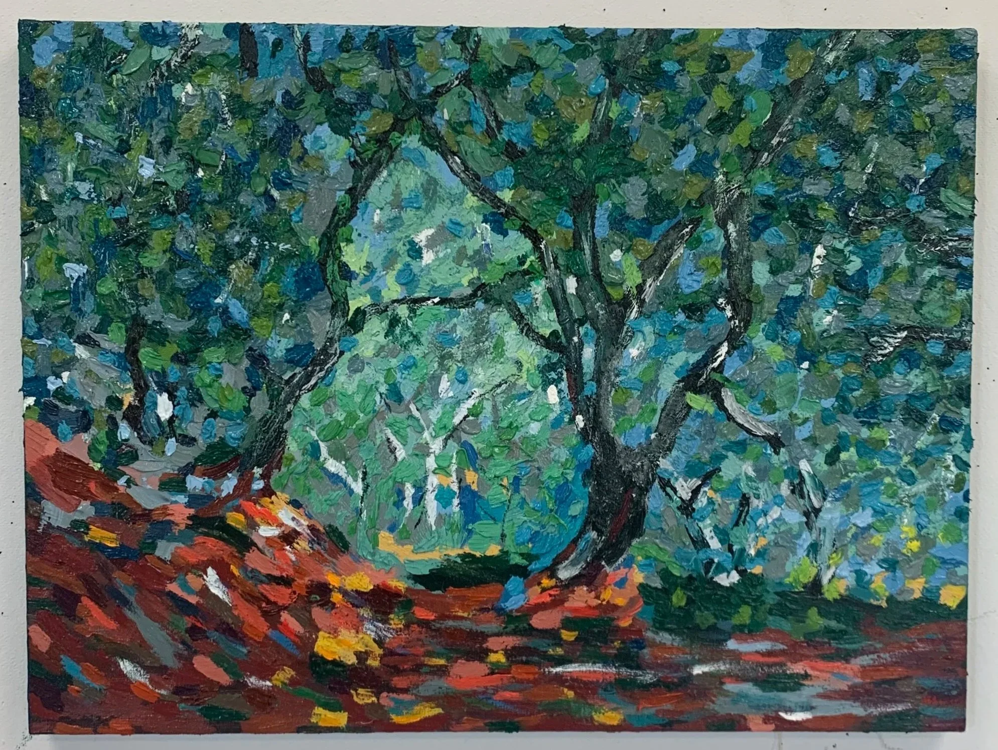 Created on a 20×24 canvas, this painting was so much fun to create. Studying Monet, how he handles paint and brush strokes, and creating a copy of it did hold challenges. But was a blast to attempt.